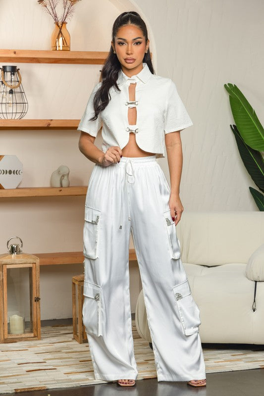 The Dual Glow Top is the perfect mix of edgy and elegant. Featuring a bold front cut with metallic clasps and a structured silhouette, it’s designed to stand out effortlessly.